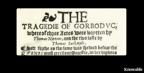 — Thomas Norton e Thomas Sackville, O Tragedie de Gorboduc (também conhecido como Ferrex e Porrex),1561